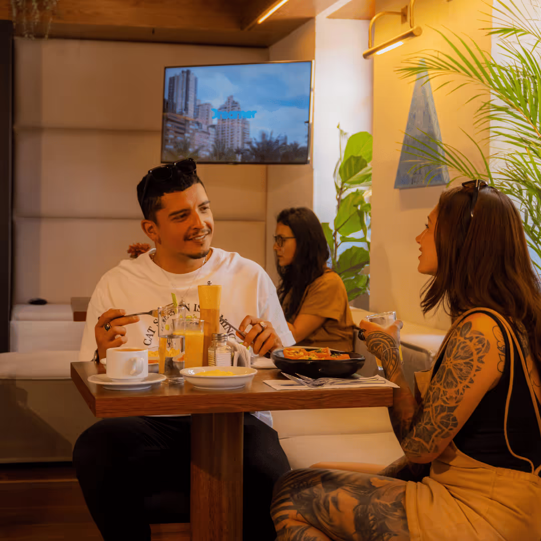 Disfruta de nuestro elegante bar de cócteles 🍸 y cafetería. Nuestro animado bar y el excelente ambiente son el lugar perfecto para socializar y hacer nuevos amigos. ¡Únete a nosotros para disfrutar de una deliciosa comida y tal vez incluso tomar una copa o dos! 🥂¡Te esperamos con los brazos abiertos! 🤗